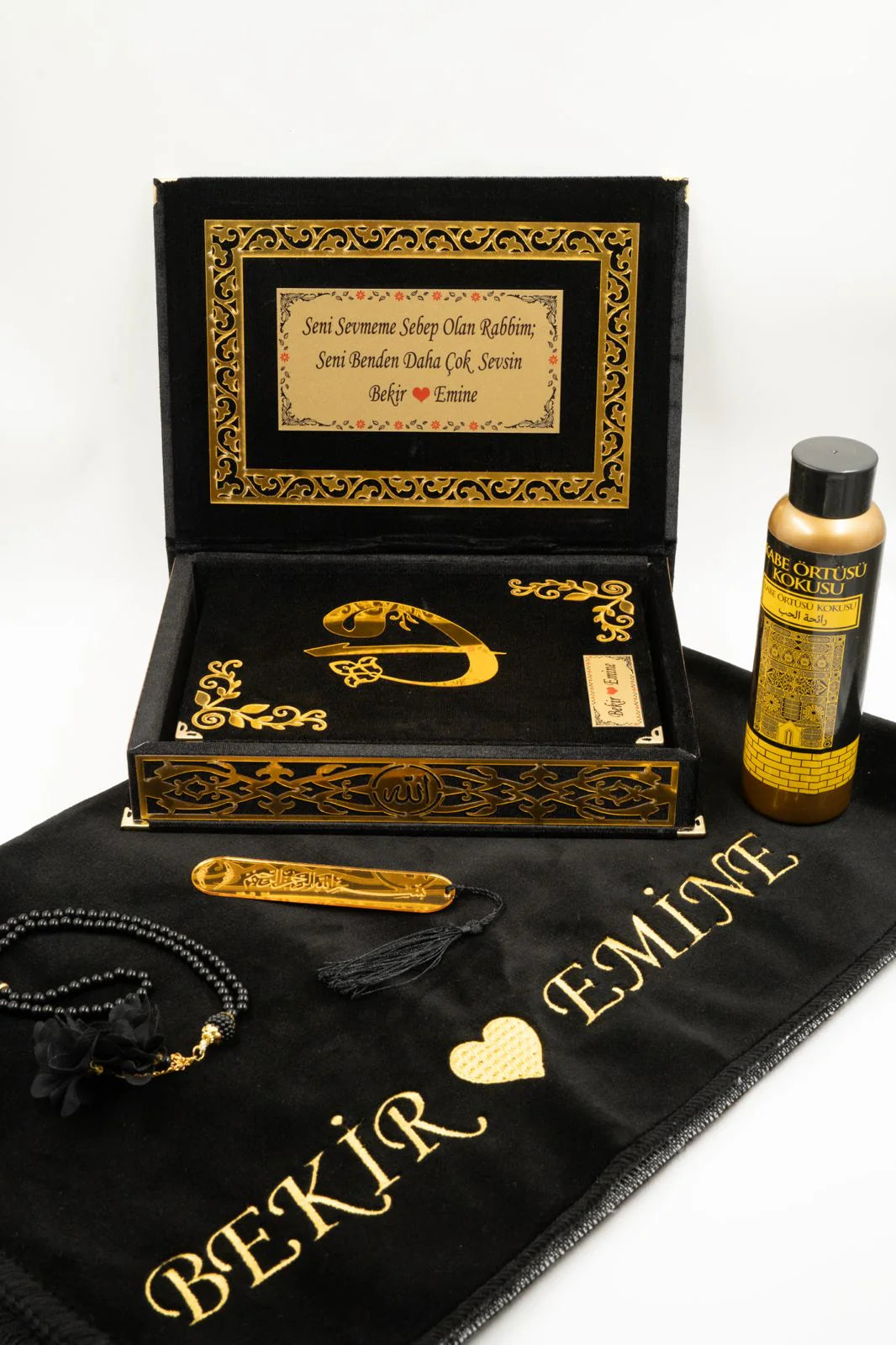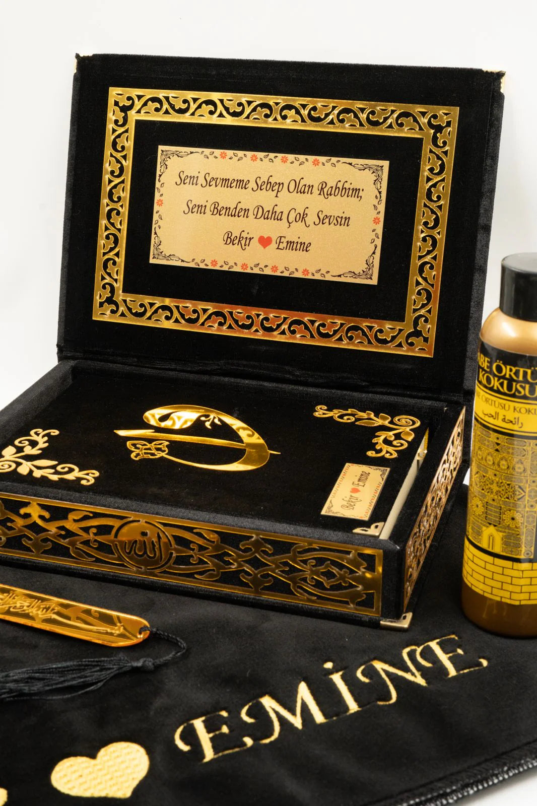 1 Adet Kadife Kutulu Kadife Kuranı Kerim (İsme Özel Yazılı)