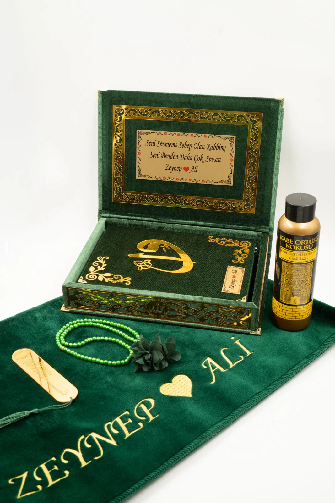 1 Adet Kadife Kutulu Kadife Kuranı Kerim (İsme Özel Yazılı)