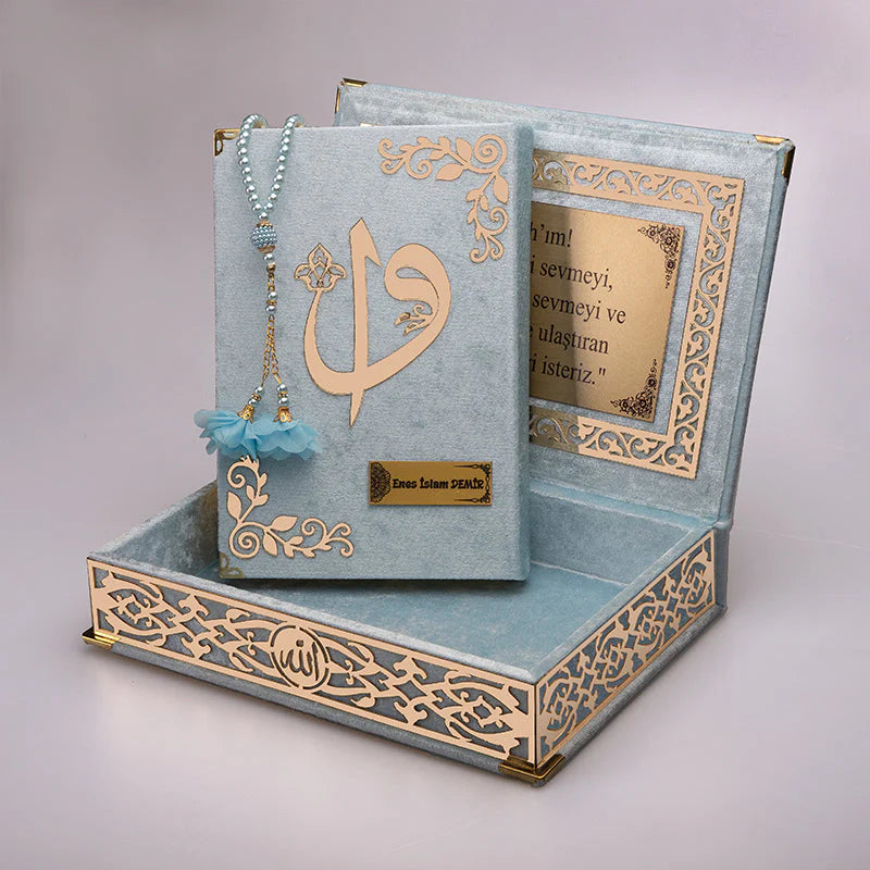 Kadife Kutulu Kur'an (Tesbih Hediyeli) - Mavi