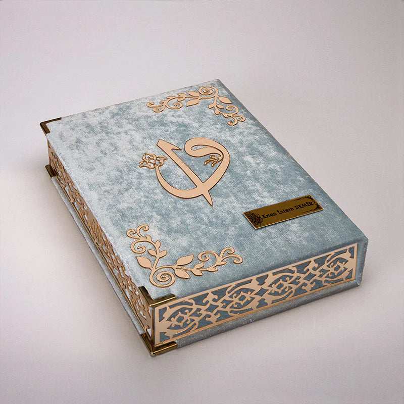 1 Adet Kadife Kutulu Kadife Kur’an-ı Kerim (İsme Özel Yazılı)