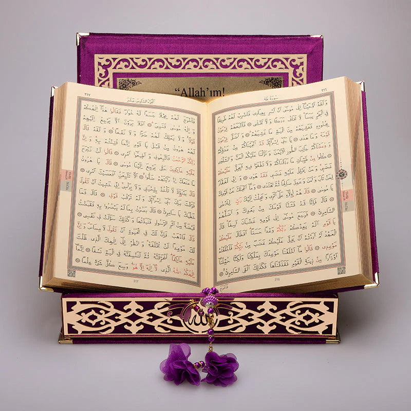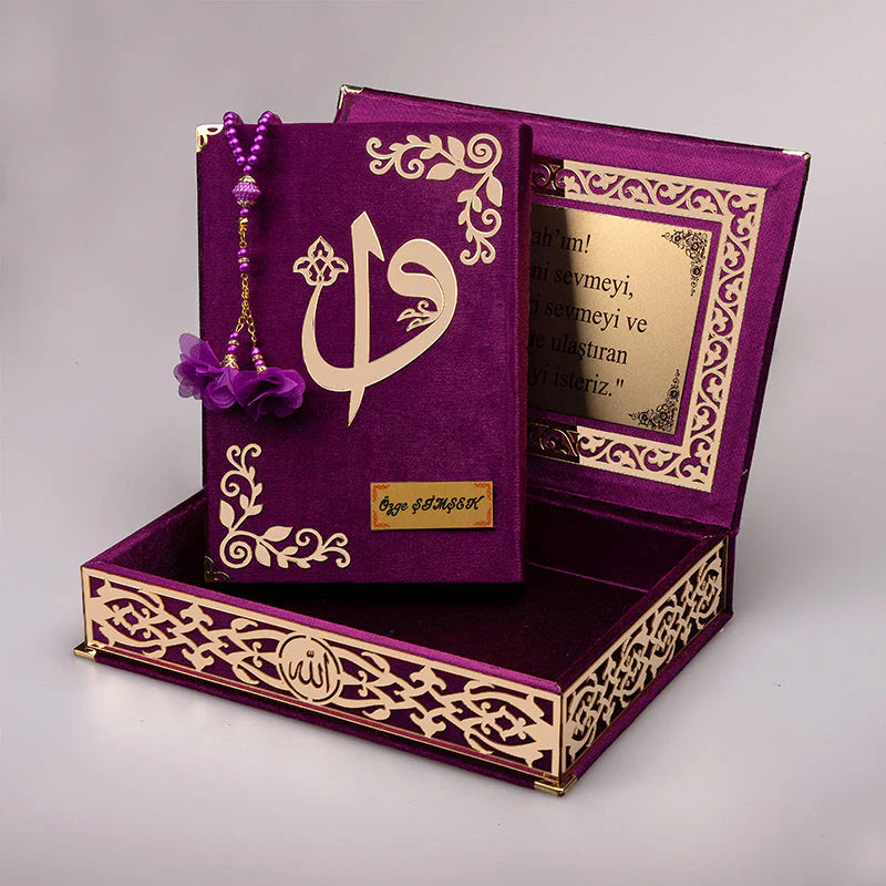 Kadife Kutulu Kur'an (Tesbih Hediyeli) - Mor