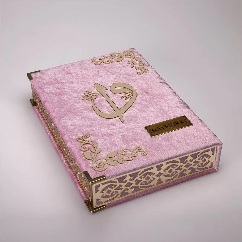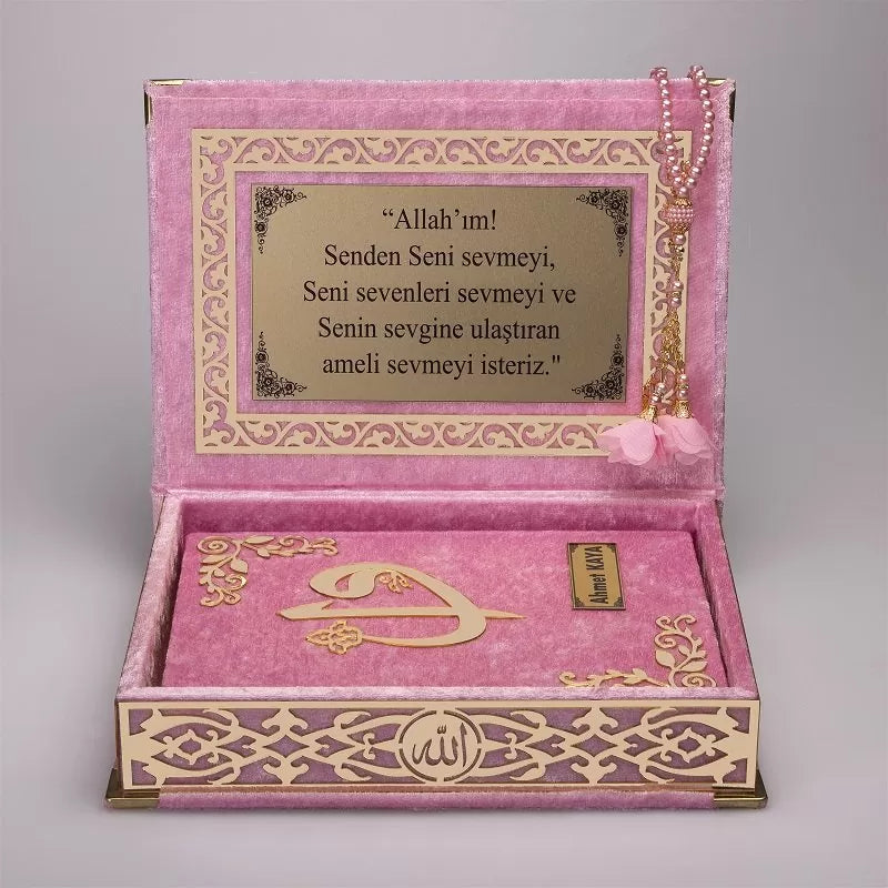 1 Adet Kadife Kutulu Kadife Kur’an-ı Kerim (İsme Özel Yazılı)