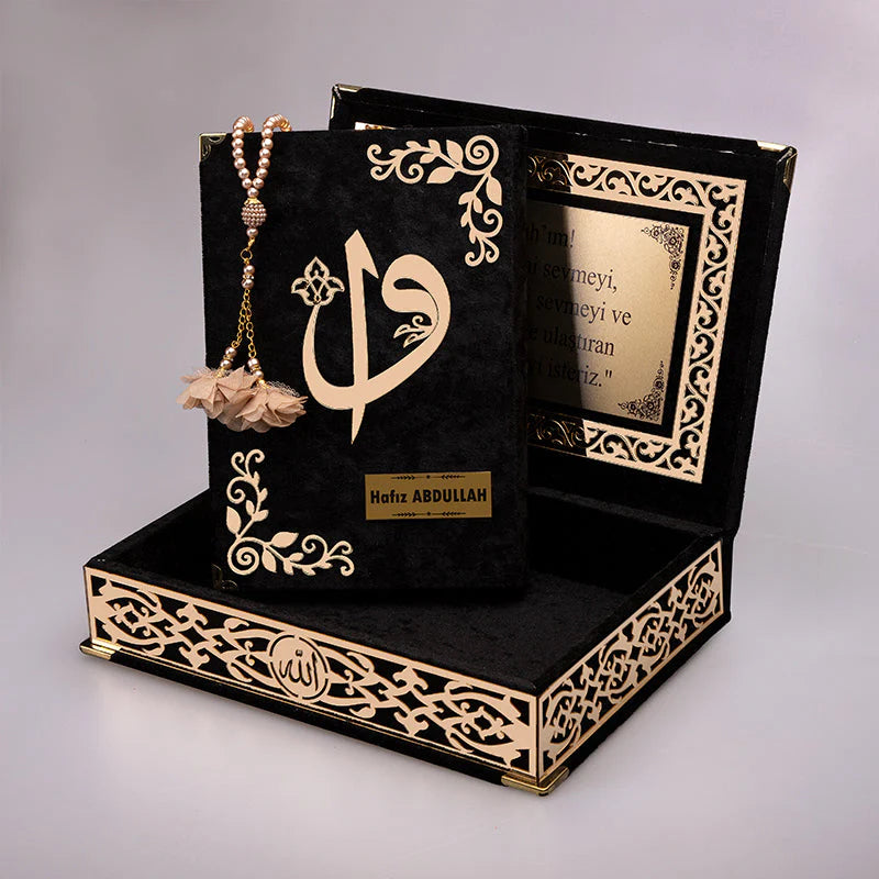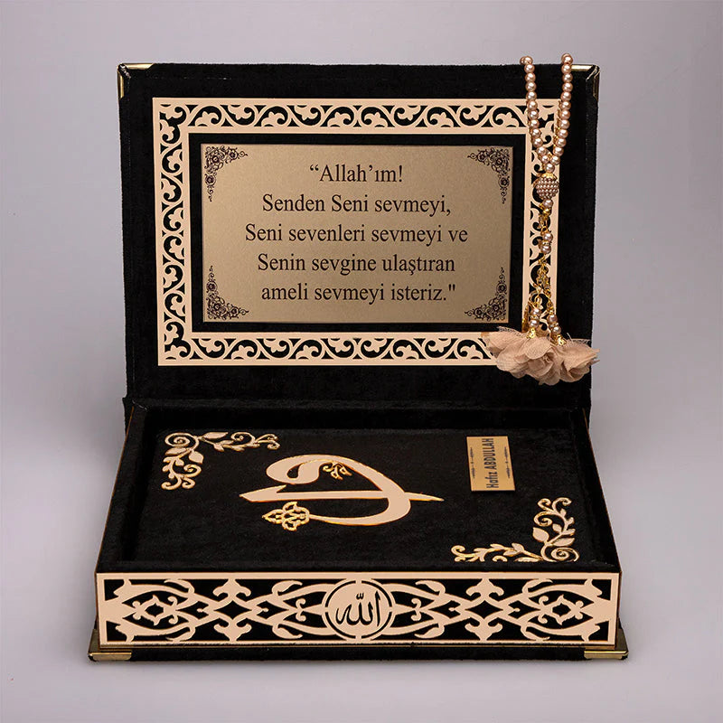 Kadife Kutulu Kur'an (Tesbih Hediyeli) - Siyah