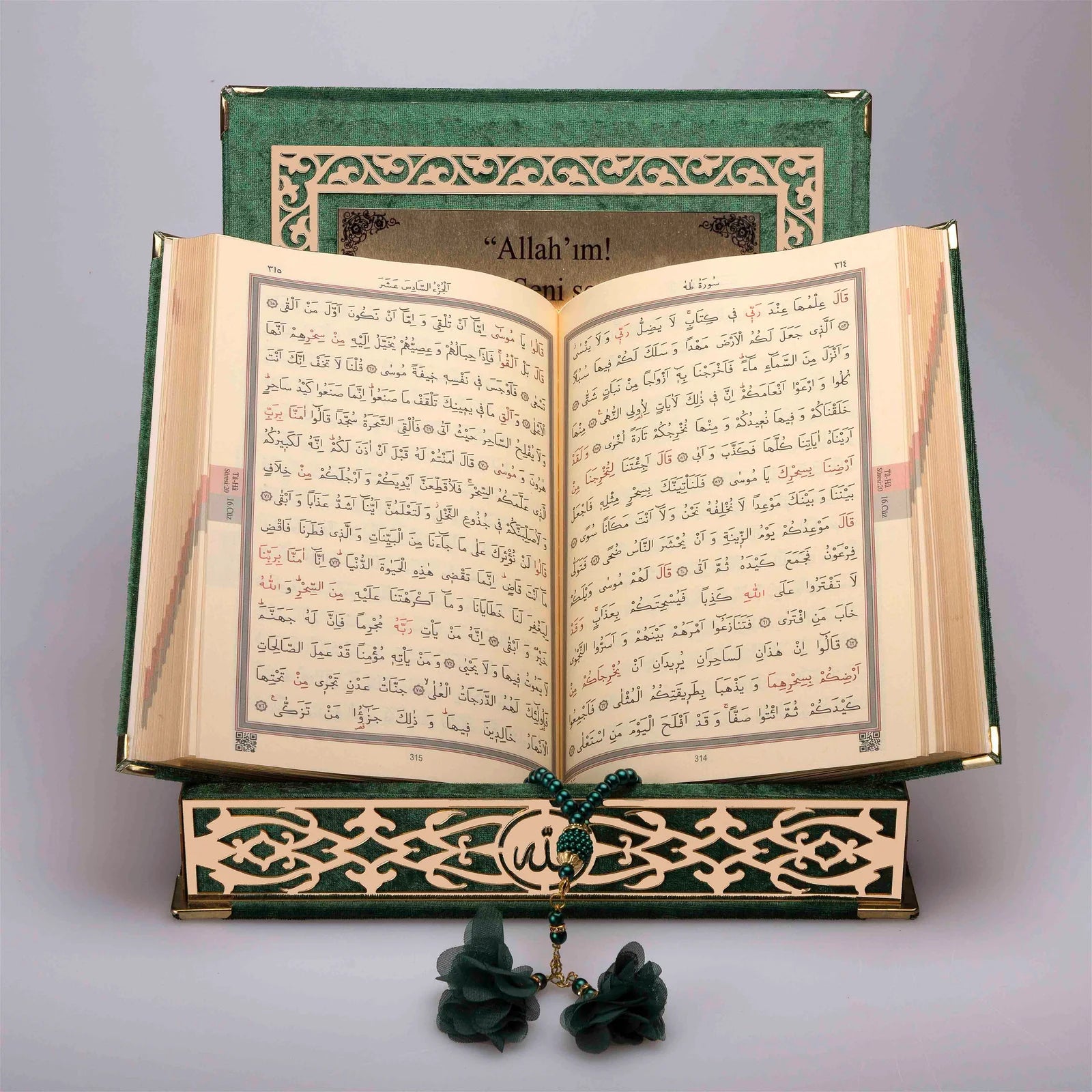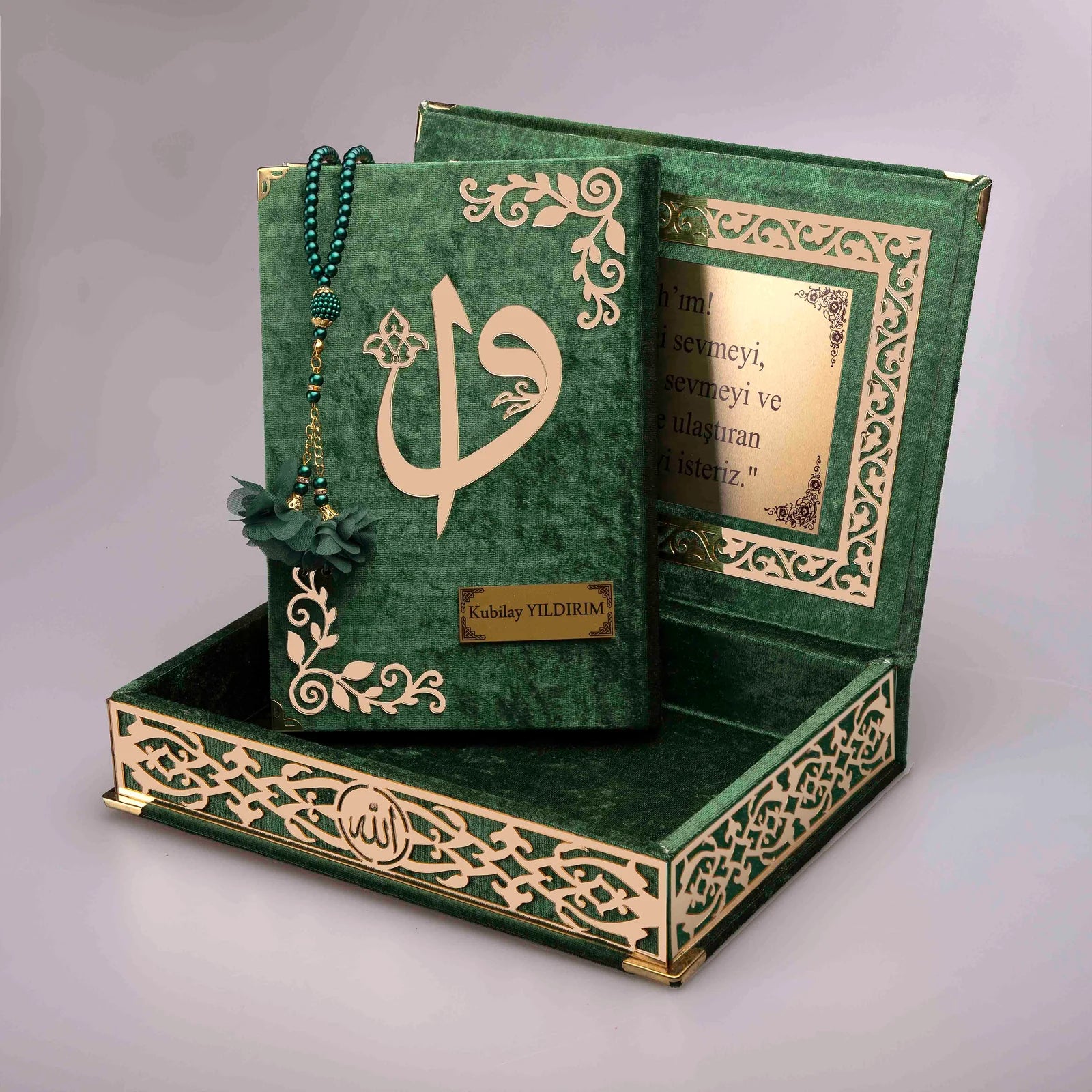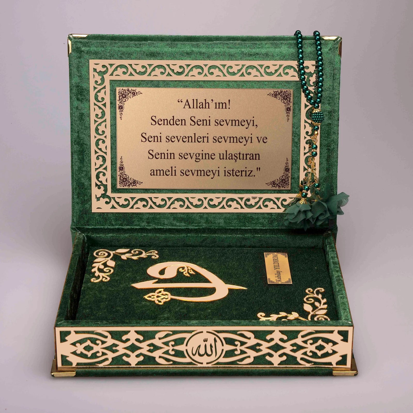 Kadife Kutulu Kur'an (Tesbih Hediyeli) - Yeşil