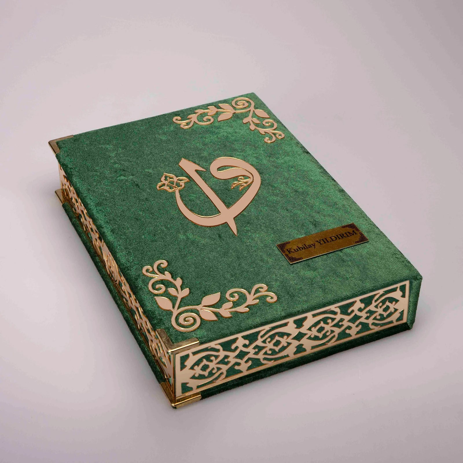 1 Adet Kadife Kutulu Kadife Kur’an-ı Kerim (İsme Özel Yazılı)