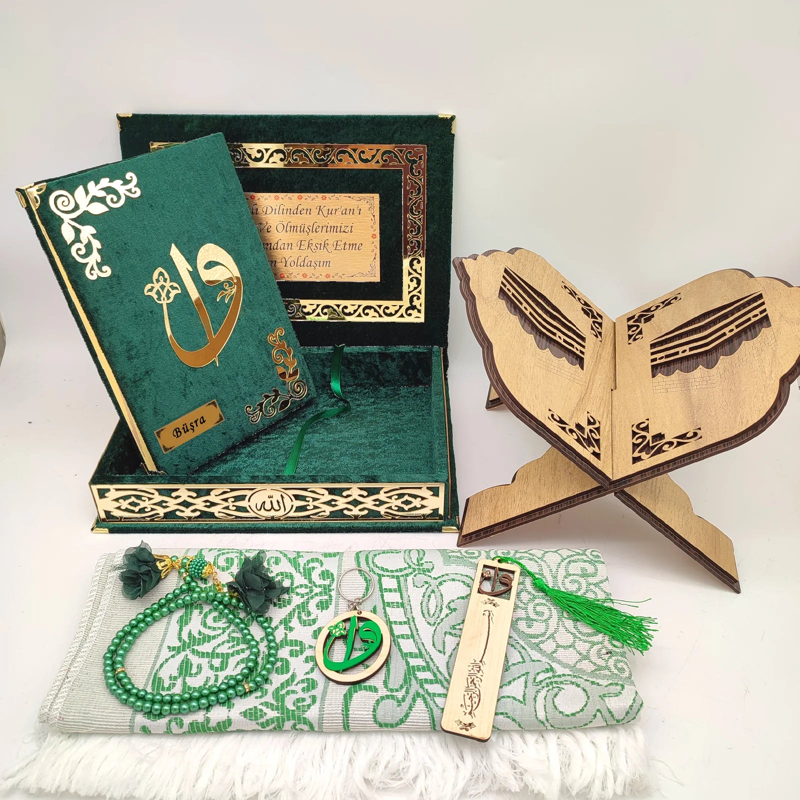 Kadife Kutulu Kur'an (Tesbih Hediyeli) - Yeşil